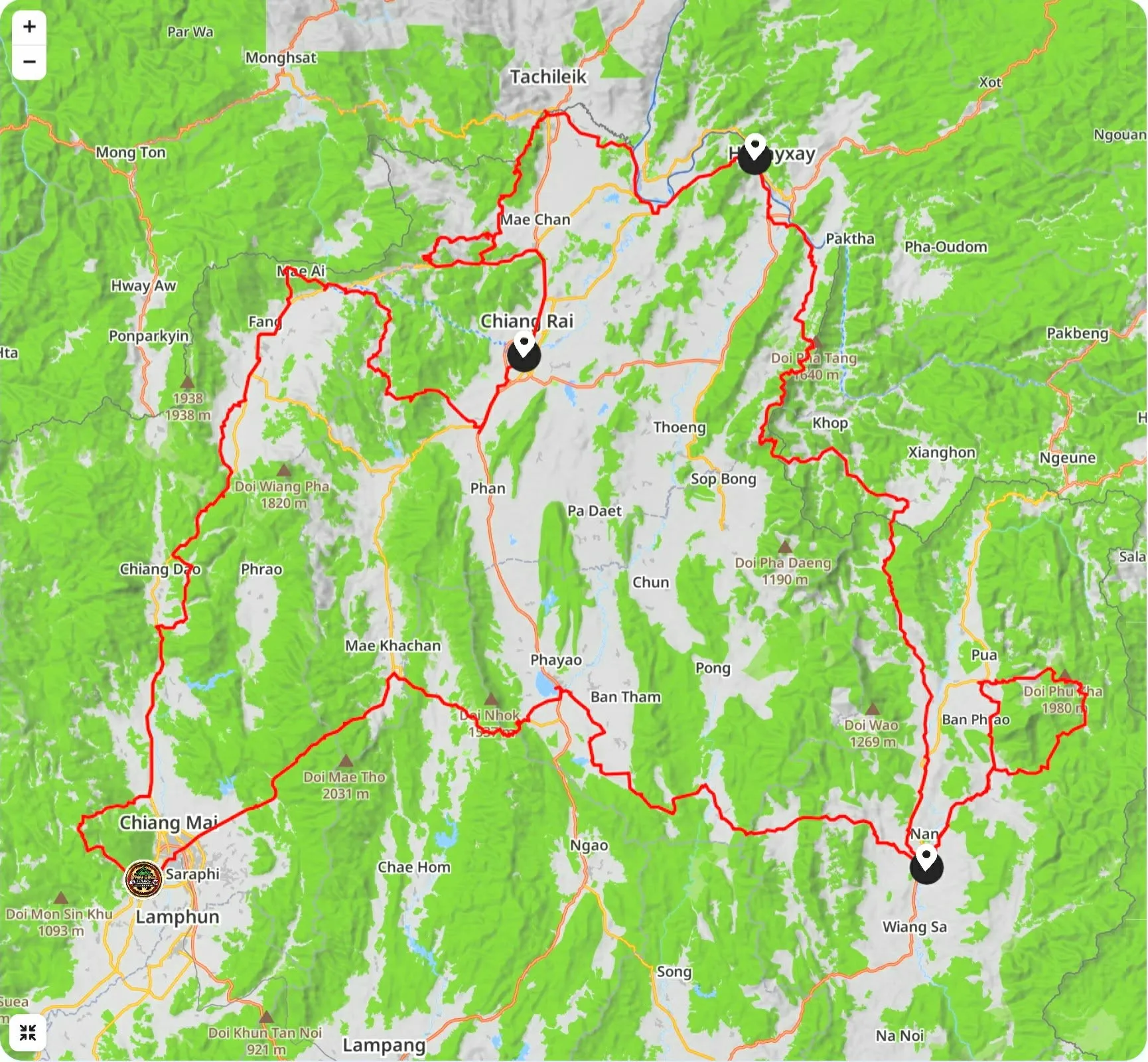 This route moves through Northern Thailand’s most elevated riding regions—border routes, ridgelines, and culturally rich terrain.