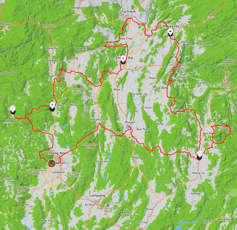 A premium cruiser journey through Northern and Northeastern Thailand, combining legendary mountain roads, cultural landmarks, and flowing scenic routes.